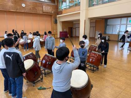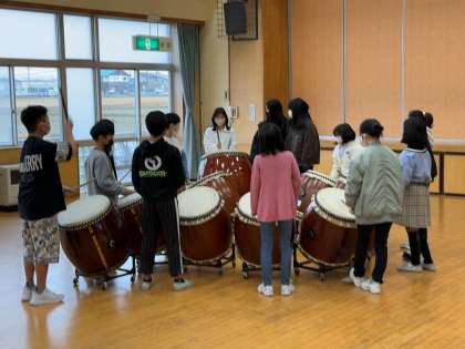 4年生の期待に応え、多目的教室で指導する6年生たちです。