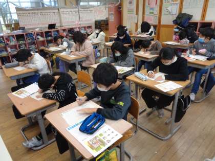 その後、好きな春の言葉を選んで書きました。次回はその言葉を毛筆で練習する予定です。