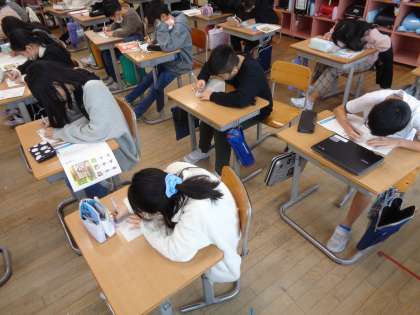 鉛筆で丁寧に竹取物語をなぞったり視写したりしました。