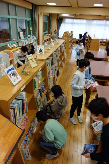久しぶりに図書室へ。3学期の本の貸し出しがスタートしました。読書が大好きな子供たちです。楽しそうに本を選んでいました。