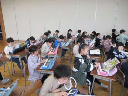 今日の音楽科では、「こぎつね」の歌詞から様子を想像しながら演奏しました。