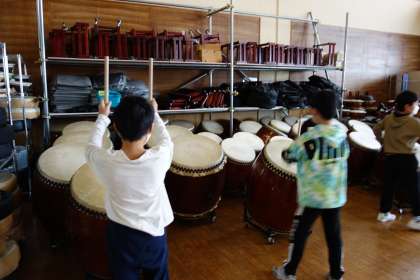 今日も6年生と和太鼓の自主練習に取り組む子供たちです。休み時間ですが、楽しそうに練習に取り組んでいます。熱中する姿はとても素敵です。