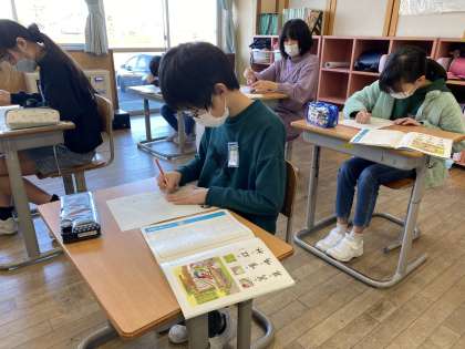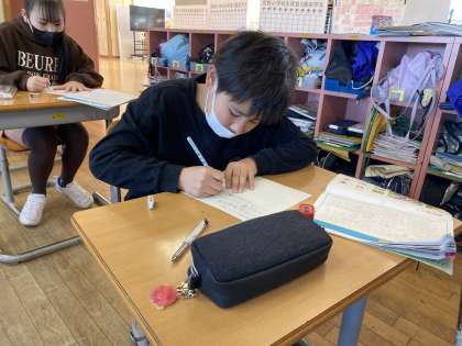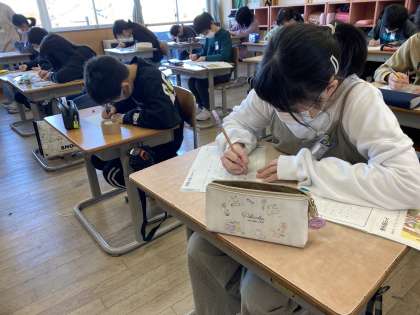 「竹取物語」を書き写しました。教室がシーンとなるほど全員が集中して書いていました。