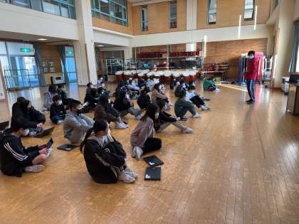太鼓げんキッズ活動は、残り4回。今日の活動をどうしていくか、朝学習の時間に集まって相談しました。