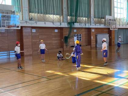 体育の学習の最初に、縄跳びの時間を設けています。どんどんレベルアップしていきましょう。