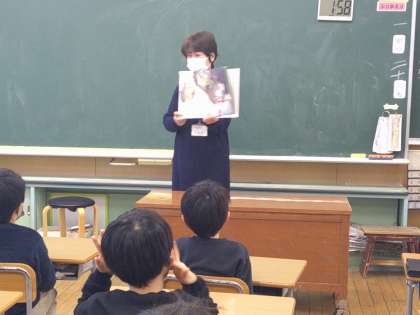 3学期も、読み聞かせがスタートしています。今日は、1・2年生、のぞみ・あおぞら級のクラスで本を読んでいただきました。
