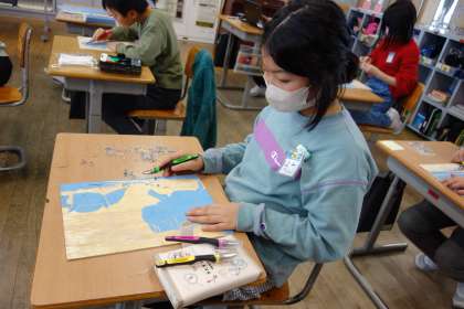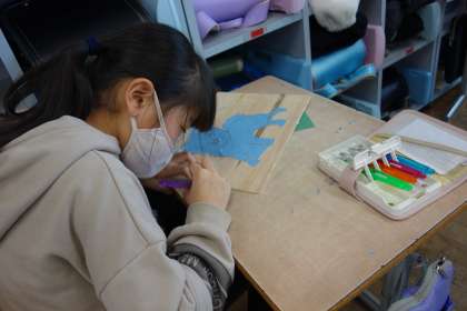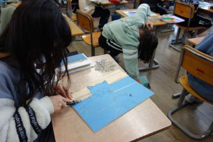 3年生のときに比べると彫りの量が多く大変ですが、黙々と彫っています。いい作品に仕上がりそうです。
