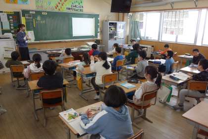 算数科担当の先生と面積の学習を行っています。先生の話をよく聞き、問題に取り組んでいました。