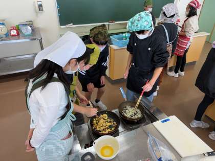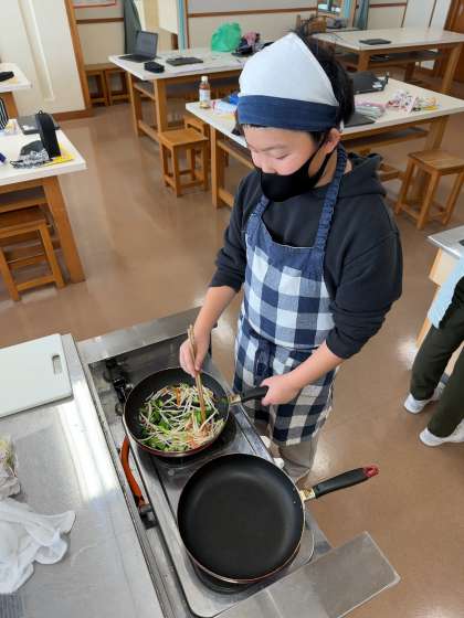 家族のために考えた献立のうち、主菜の調理実習を行いました。