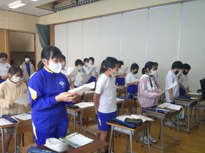 子供たちは、歌うことが大好きです。音楽専科の先生のご指導により、ますます歌声に磨きがかかってきました。音楽の授業では、学習の始めに、今月の朝の歌「歌よ ありがとう」を、伸び伸びと歌う子供たちの姿が見られました。心と体を解放した子供たちは、今日の課題に対しても、意欲を高めていました。