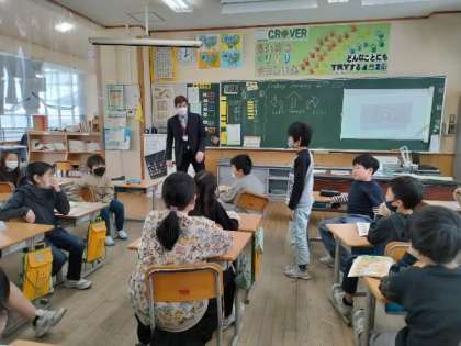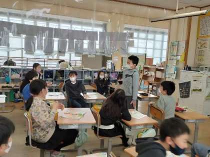 「Turn right」「Go straight」など、道案内の仕方を学習しました。ALTの先生や代表の友達を、教室内の目的地へ案内するゲームを楽しみました。
