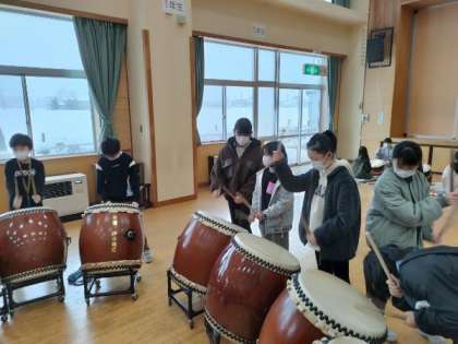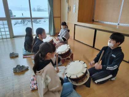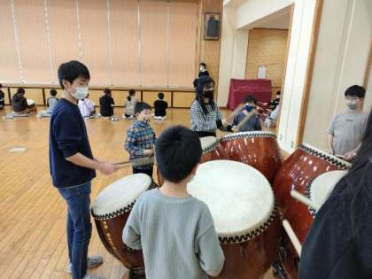 「大河」は、宮野小学校の近くの神通川の表情を表現した曲です。締太鼓の波を始め、上流から下流へと勢いを増して流れる神通川の様子を、3種類の太鼓で表します。今日、「大河」チームは、曲を始めから最後まで6年生と一緒に通すなど、早くも折り返し地点となりました。このあとは、細かいところを見直したり、自分たちだけでも演奏できるようになるよう、がんばります。6年生さん、4年生に手取り足取り教えてくださり、ありがとうございます。