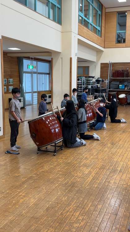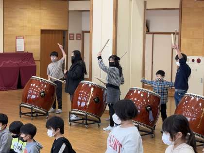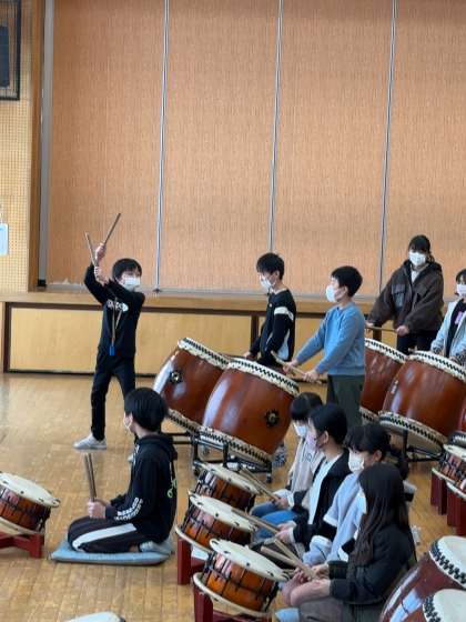 和太鼓の演奏を引き継ぐために、6年生の子供たちは工夫しながら教えています。