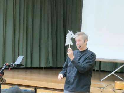 「何度見てもおもしろいです」子供たちから出た率直な感想です。毎年、子供たちは、この影絵鑑賞会を楽しみにしています。上学年の子供たちは、真剣な表情で見つめています。宮野地区に、影絵師とキーボード奏者の方がいらっしゃり、そのコラボが実現し、こうして子供たちに見せていただけることに、本当に感謝しています。