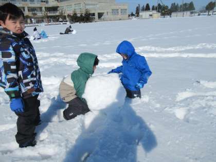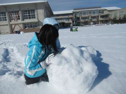 スキー山でそりをしたり、大きな雪玉を転がしたり、かまくらを作ったりして遊びました。