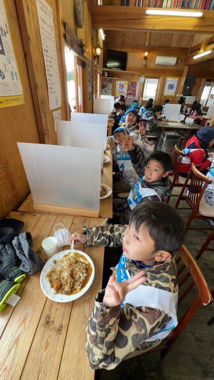 おいしいカレーライスを食べる6年生です。