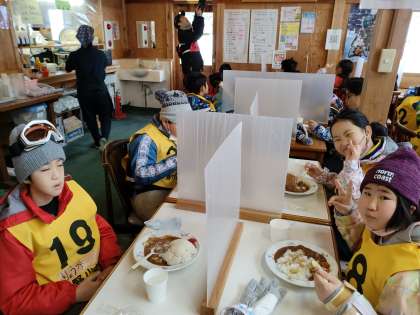 午前の実習が終わり、昼食の時間になりました。美味しいカレーライスをいただいています。お腹いっぱいになった子供たちは、午後からの実習もがんばろうと、張り切っていました。