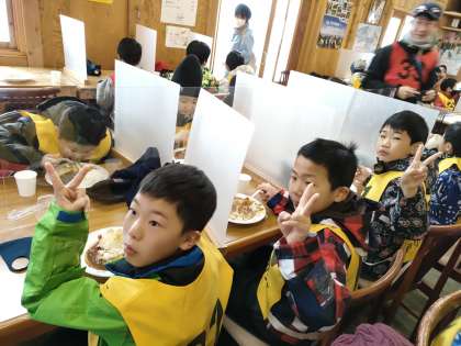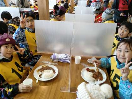 午前の実習が終わり、昼食の時間になりました。美味しいカレーライスをいただいています。お腹いっぱいになった子供たちは、午後からの実習もがんばろうと、張り切っていました。