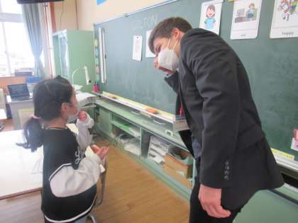 今日は2年生の教室にALTの先生が来てくださいました。