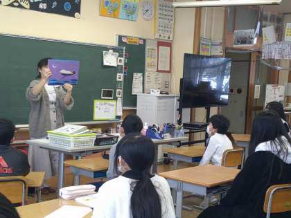 子供たちは、真剣な表情で耳を傾けていました。今日は、節分です。鬼より強い子供は、いるでしょうか…