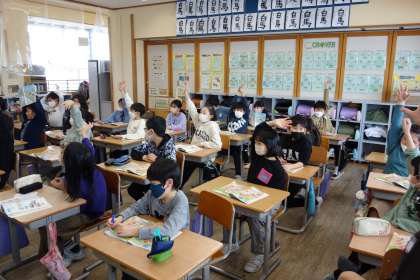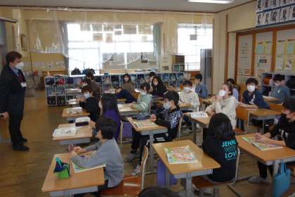 子供たちなりの英語や身振り手振りを使って、外国語担当の先生に伝えようとしていました。「伝えよう」とする気持ちが大切ですね。