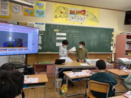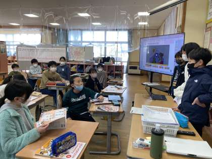 外国語の学習の中で、日本の行事についてのクイズをしました。季節やすることなどからスリーヒントを作り、他のグループの友達に出し合いました。