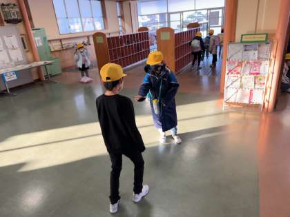 運営委員会の新しい活動がスタートしました。朝、出会ったときにじゃんけんをします。勝った方から挨拶をします。たくさんの笑顔が自動玄関で見られました。