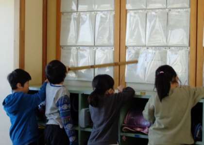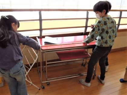 今日の算数では、1m物差しを使って、1mだと思うものをグループで測ってみました。給食の配膳台の横、算数の道具を置いている棚の横など、いくつか見つけましたが…1mだと思っていたものが意外に少なくて、子供たちは、驚いていました。
