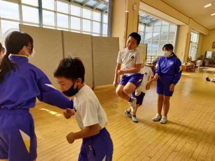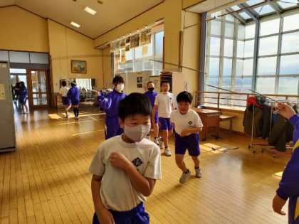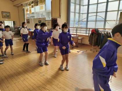 業間の「わくわくトレーニング」では、全校で、なわとび運動に取り組んでいます。4年生は、「8の字跳び」に夢中です。続けて入ることができなかった子供たちも、友達の声かけやアドバイスで、どんどん入ることができるようになっています。リズミカルに連続して跳び続けることが、8の字跳びの醍醐味です。業間に仲間と共に思い切り体を動かした子供たちは、とても生き生きした表情で、3限の学習に臨みます。