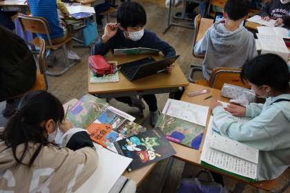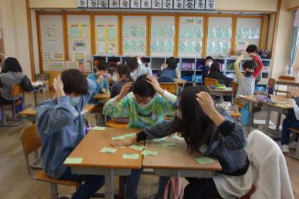 各市町村の特色を学習した子供たち。今日は、カルタで知識を定着させました。
