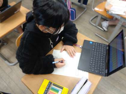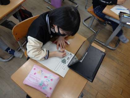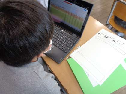 総合的な学習の時間には、宮川地区や熊野地区の人口の移り変わりのデータを見てみました。宮野校区には男性よりも女性の方が多いことや、昔と比べて人口が増えていることに気付きました。