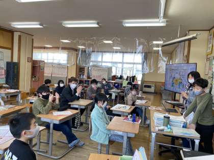 スリーヒントクイズをALTの先生に出題してみました。難しいものもあって、クイズ大会は盛り上がっていました。