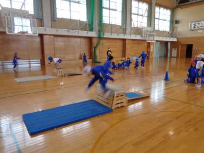 体育の時間には、跳び箱を行いました。前回よりも段数を1段増やしましたが、軽やかに跳んでいく子供たち。「もっと高くても跳べるよ。」「跳び箱の向きを変えて跳んでみたい。」などの声も聞かれました。とても意欲的に取り組んでいます。