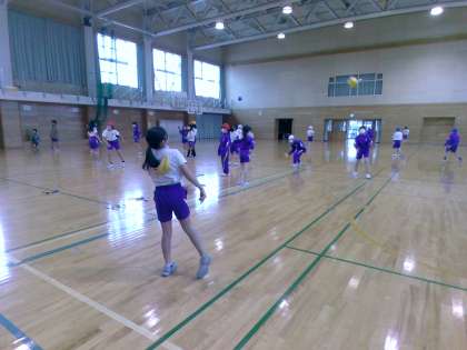 様々なメニューでパス練習を行い、キャッチングや片手でのスローイングに慣れています。