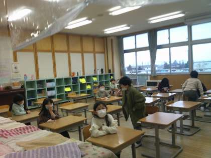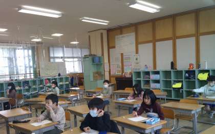 欠席者が多く、教室はひっそりしていました。「みんな おらんで さみしい」とぽつり。明日から三日間、お休みとなります。
