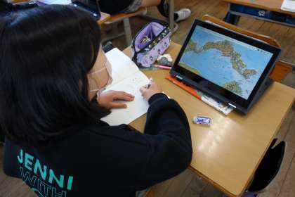 これまでに見聞きした情報を手がかりにして富山県と外国のつながりについて予想を立てたり、資料をもとに友好姉妹都市を調べたりしました。