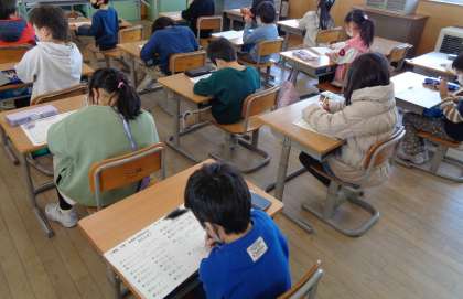 週明け、元気に学校に来てくれた子供たちが多かったため、今日宮野っ子検定の1回目のテストを行いました。苦戦している問題もありましたが、100点を取りたいと最後まで粘っている姿が見られました。