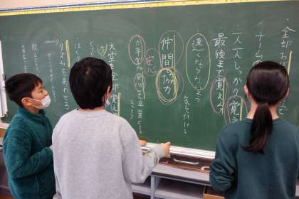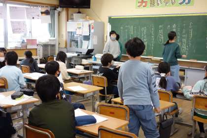 6年生から引き継ぎを行っている宮野清流太鼓。今日は、ビデオを通してこれまでの引き継ぎ活動を振り返り、今後の活動を見通しをもちました。6年生にできるようになった姿を見せられるように、これからの練習時間をより大切にしていきましょう。