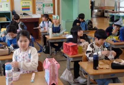 学習参観の振り替え休業日ではなくなったため、給食がなく、お弁当でした。大好きなものをたくさん詰めてもらって、みんなニコニコ。「たくさん入っていたのに、もうなくなって、なんだか少なく感じるよ」と子供たち。あっという間にお弁当を空っぽにしていていました。お忙しい中、用意していただき、ありがとうございました。