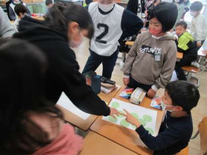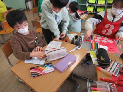 1年生のお兄さんお姉さんとして進んで貼り付けや色塗りをしたり、1年生にやり方を教えたりしていました。