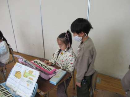 2年生 指の位置を気を付けて弾こう 〜鍵盤ハーモニカ〜