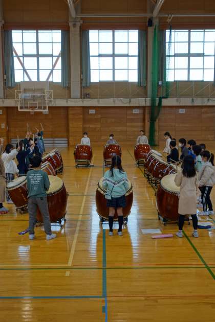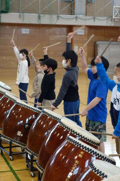 4年生単独の和太鼓練習の様子です。6年生から学んだことを思い出しながら、自分たちで練習を進めました。
