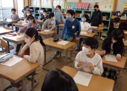ビンゴ係がビンゴ大会を行いました。枠内の動物を9つのマスに自分で書き込む手作りのビンゴは、係が動物の名前を引くたびに大盛り上がり。ビンゴになった先着10名は、係が用意した塗り絵の景品をプレゼントされました。今度はどんなビンゴにしようか係のメンバーは張り切っています。