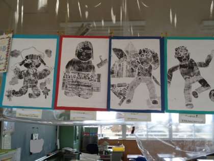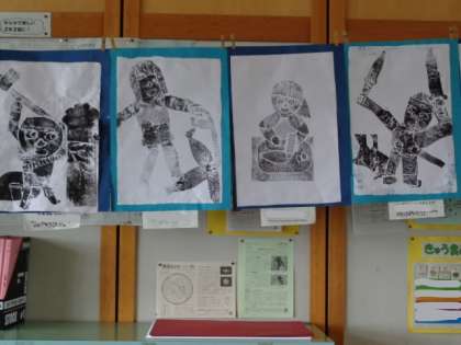 版画が完成し、友達の作品を鑑賞しました。「そろばんの駒や、ピアノの鍵盤など細かいところまで丁寧にあらわしているよ」「周りの風景も表していていいな」など、友達のいいところをたくさん見つけることができました。