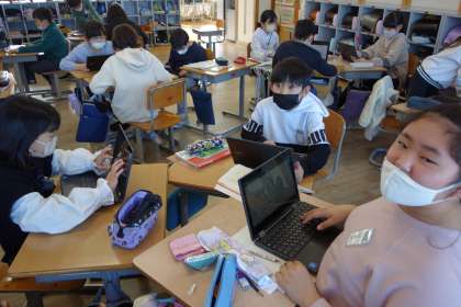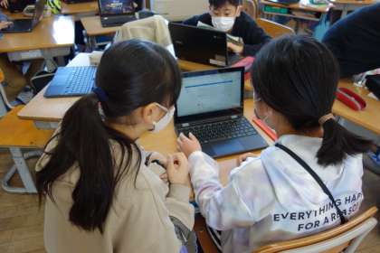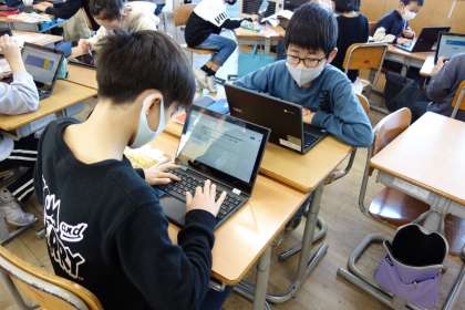 Googleフォームでアンケートをつくり、お互いにアンケートに答えました。明日は、集まったデータを確認して、発表の準備を進めましょう。
