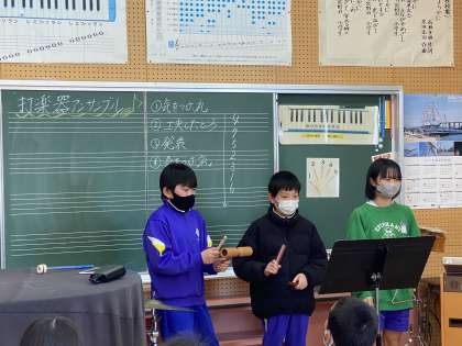 自分たちの班で作り上げたリズムを発表し合いました。打楽器だけで作り上げる音楽もまた素敵でした。