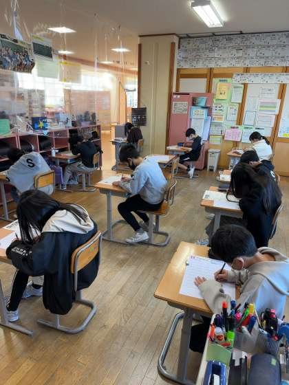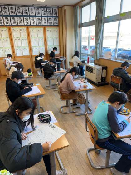 期末テストも行いました。今週はテスト週間。今までの学習の成果を確かめます。