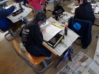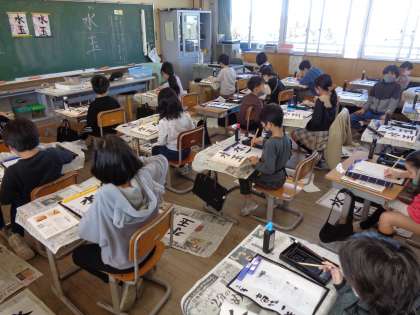 書写では、3年生最後の字「水玉」の清書を行いました。1学期の頃と比べると、全員が大成長しています。今後も書道の学習は続きます。これからもどんどん上達していってほしいと思います。