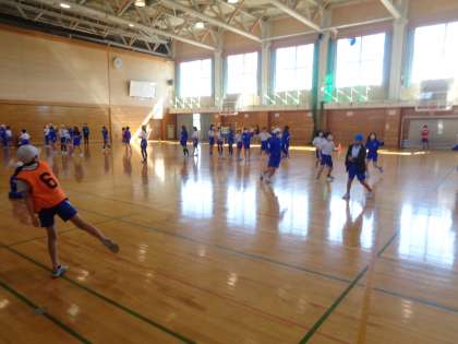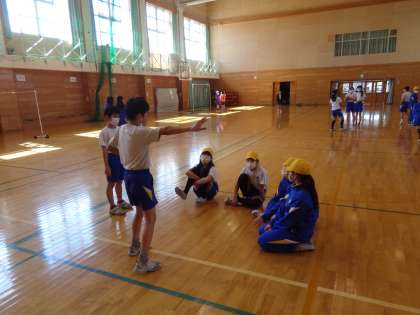 試合前にチーム内練習の時間をとりました。みんなで作戦を立てたり工夫して練習に取り組んだりしました。