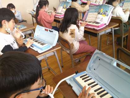 階名で歌ったり、鍵盤ハーモニカで指づかいに気を付けて演奏したりしました。
